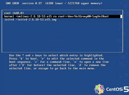 再按e键,则变为grub edit>kernel /boot/vmlinuz-2.6.23.1-42.fc8 ro root=LABEL=/rhgh quiet。