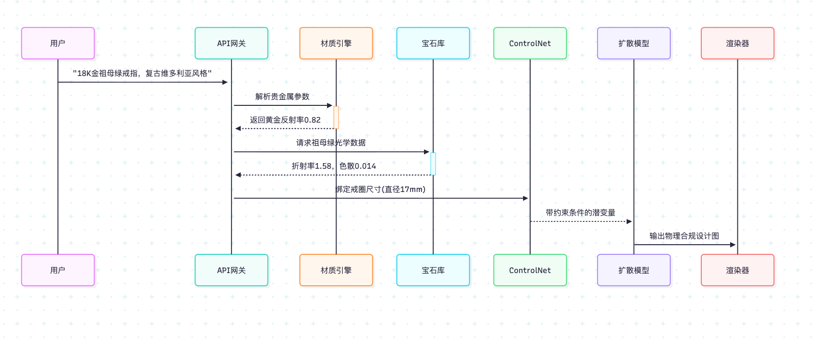 API网关->>ControlNet: 绑定戒圈尺寸(直径17mm)